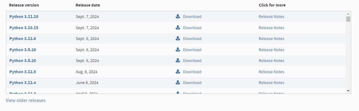 2. Downloads 탭을 누르고, 원하는 버전 인스톨러 설치하기